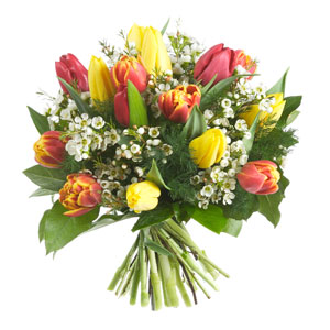 Mixed color, all-red or all-pink tulips bouquet for delivery anywhere in Italy.